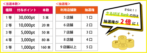 ■期間中、1,000円以上のお支払い店舗が5店舗以上のユーザー様は、店舗数に応じ自動的に抽選権を獲得できます。
