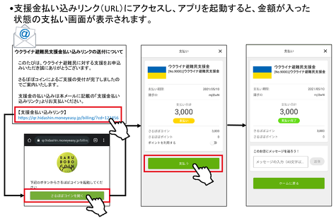④送付されたリンク(URL)からさるぼぼコインアプリへ遷移し払込。