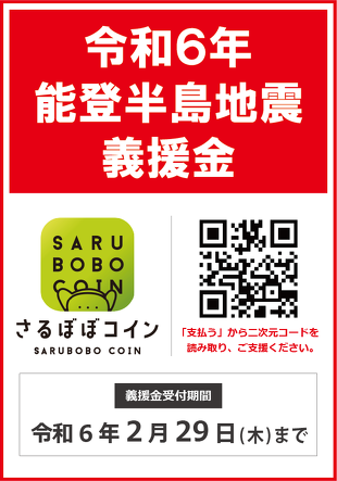 ※1/10(水)、さるぼぼコインアプリのプッシュ通知にて本義援金の支払いリンクをご案内しております。