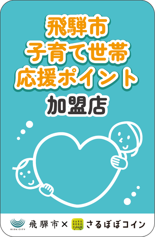 飛騨市子育て世帯応援ポイントとは、子育てに関連する商品の販売やサービスを提供する飛騨市内のさるぼぼコイン加盟店のうち、飛騨市が認めた店舗(以下「利用可能店舗」という。)にて1ポイント=1円としてご利用いただけるポイントです。