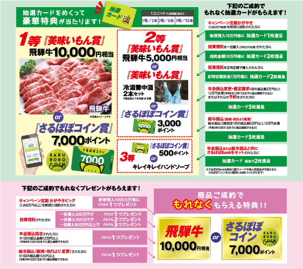 ー | 「飛騨牛」または「さるぼぼポイント」からいずれか1つ (1,000万円毎)  |