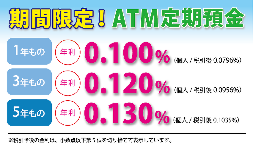 | 定期預金概要 | 期間限定ATM定期預金 | |