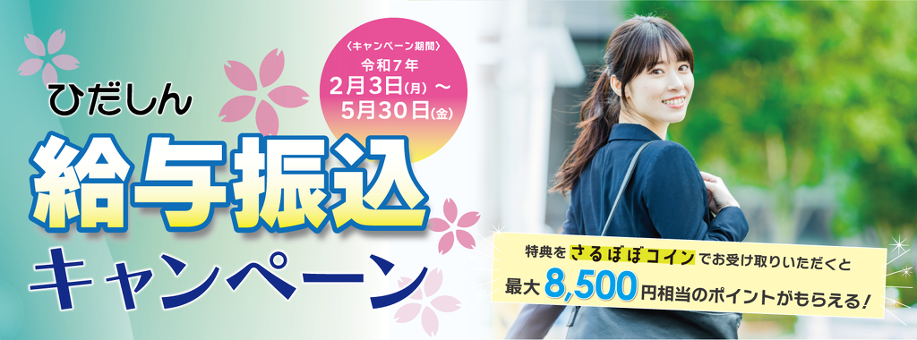 ※本キャンペーンは専用申込書のご提出が必要です。詳しくは最寄りのひだしんにお問い合わせください。